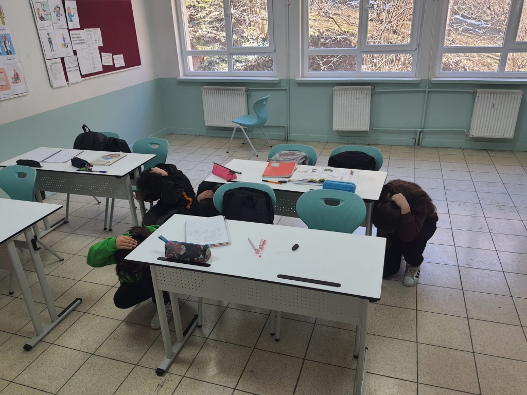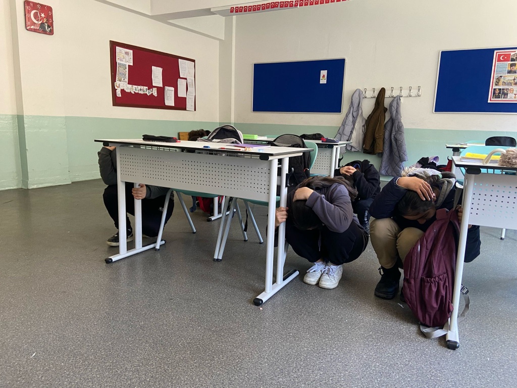1-7 Mart Deprem Haftası Etkinlikleri doğrultusunda okulumuzda Deprem Tatbikatı gerçekleştirdik. Sınıflarında Afet Farkındalık Eğitimi videolarını izleyen öğrencilerimiz daha sonra 'Çök-Kapan-Tutun' hareketlerini yapıp siren sesiyle okul bahçesine çıktılar. Tatbikatı organize eden Sivil Savunma Kulübü öğretmenlerimize ve destek olan tüm öğretmenlerimize teşekkür ederiz.
